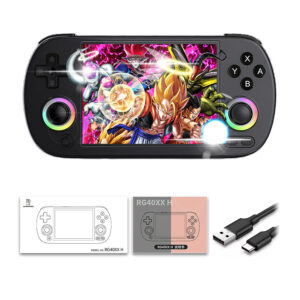 La Anbernic RG40XX H es una consola retro de alto rendimiento diseñada para los amantes de los videojuegos clásicos. Con un diseño moderno disponible en colores negro, azul y gris, esta consola portátil cuenta con una **pantalla IPS de 4,0 pulgadas** con laminación completa OCA y resolución de 640×480 para una experiencia visual nítida y vibrante. Equipada con un procesador ARM Cortex-A53 de cuatro núcleos H700 a 1,5 GHz y GPU G31 MP2 de doble núcleo, garantiza un rendimiento fluido. Su RAM LPDDR4 de 1 GB y el almacenamiento mediante una tarjeta MicroSD de 64 GB ofrecen capacidad para más de 5000 juegos, con posibilidad de expansión hasta 512 GB. Compatible con más de 30 emuladores, permite a los usuarios cargar y disfrutar de sus propios juegos. La Anbernic RG40XX H funciona con un sistema Linux de 64 bits, incluye Wi-Fi de doble banda y Bluetooth 4.2, y admite conexión HD a TV, emparejamiento de controladores inalámbricos y motores de vibración para una experiencia de juego inmersiva. Su batería de 3200 mAh ofrece hasta 6 horas de uso continuo y se carga rápidamente a 5 V/1,5 A. Los efectos de iluminación RGB personalizables en el joystick y los altavoces de alta fidelidad completan las características de esta consola, que incluye soporte multimedia para múltiples formatos de video y audio, además de un lector de libros electrónicos.