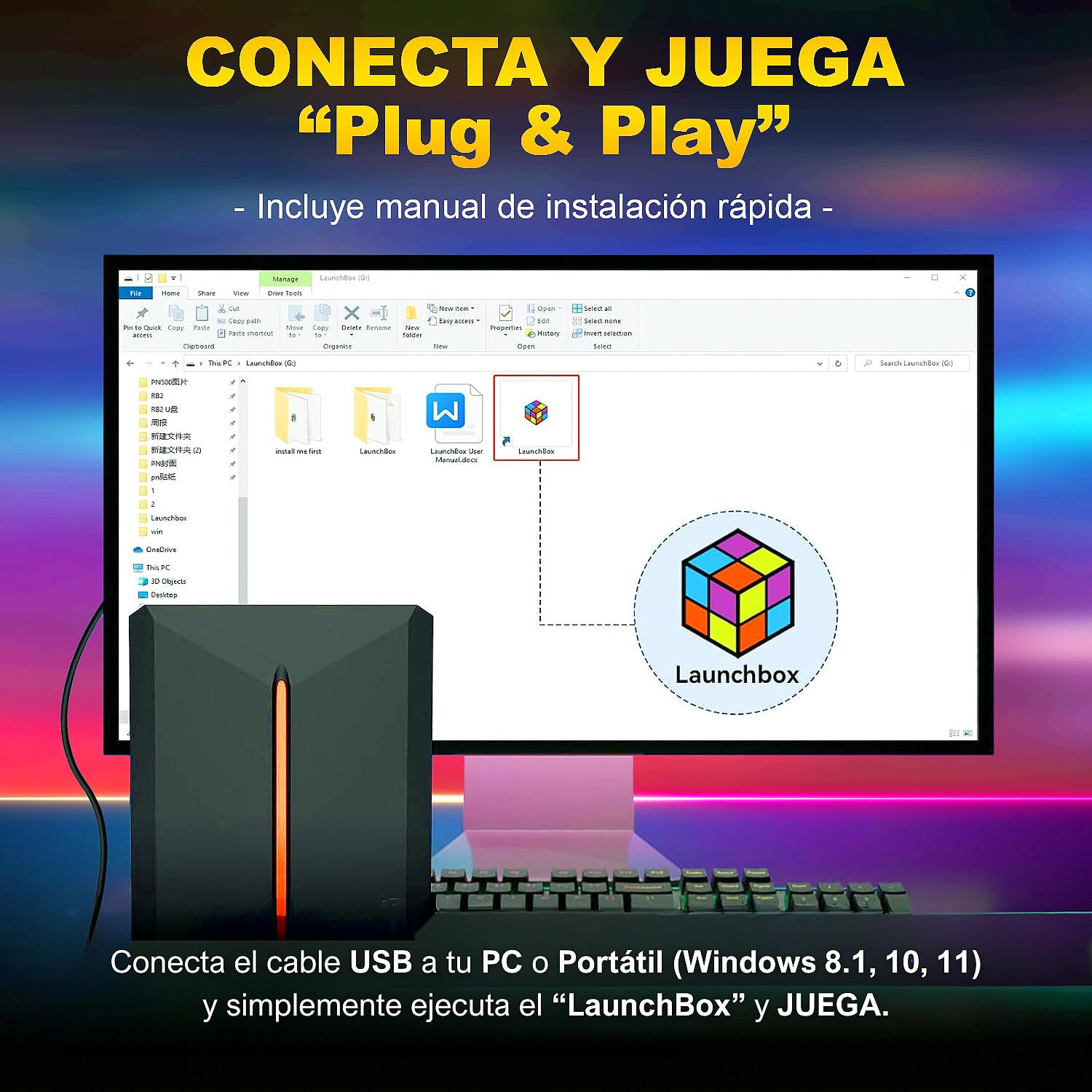 LaunchBox HDD 500 está orientado a usuarios que quieren una biblioteca retro amplia en PC o portátil sin invertir tiempo en configurar emuladores desde cero. El sistema llega preparado para conectar, arrancar y jugar.