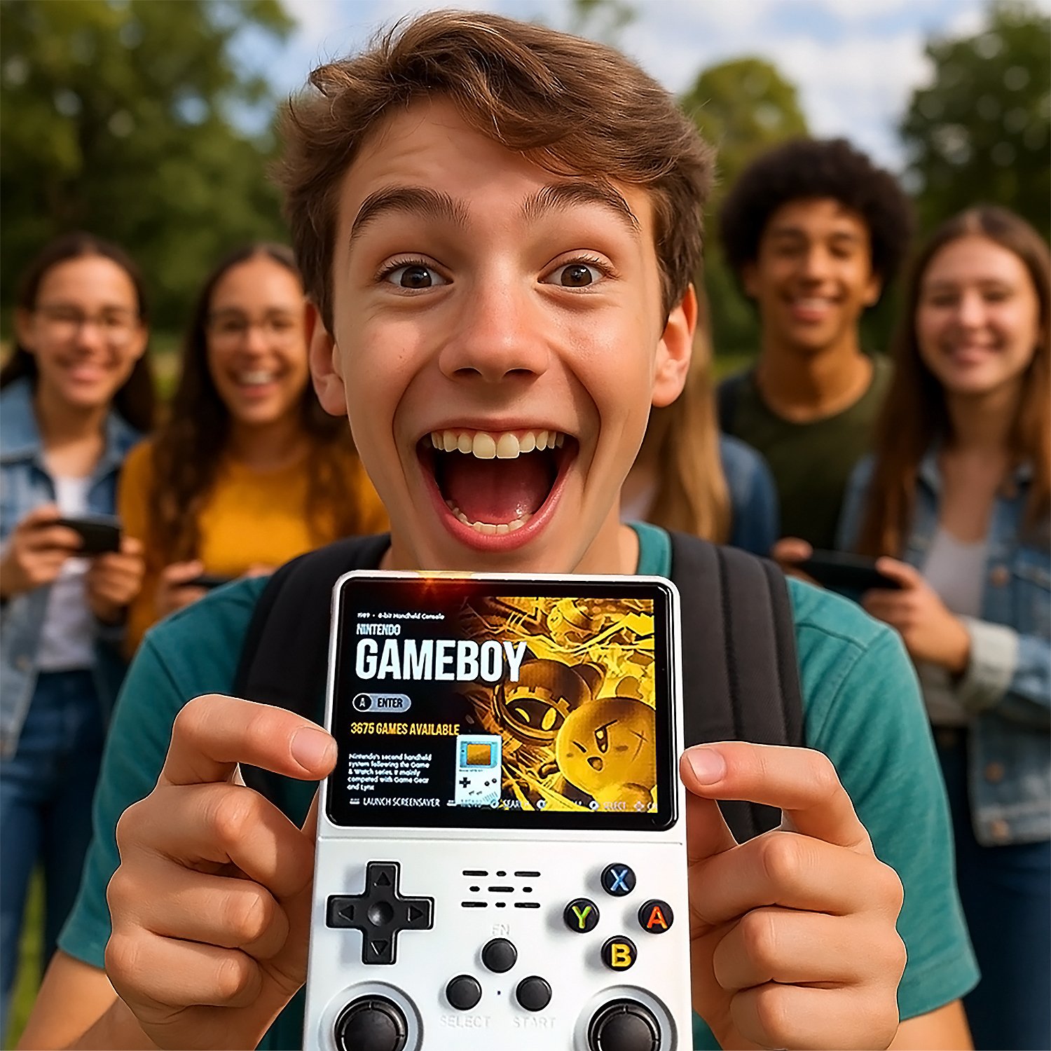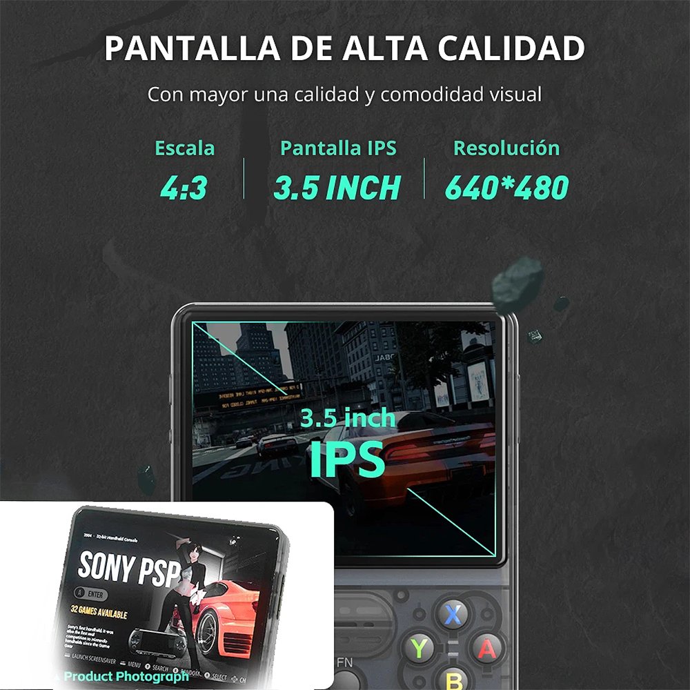 - 🟢【Pantalla】Disfruta de una pantalla HD de 3.5 pulgadas con resolución de 640×480 que ofrece una calidad de imagen excepcional. Gracias a la tecnología IPS, esta consola portátil proporciona colores vibrantes, imágenes claras y detalladas, y amplios ángulos de visión. Ideal para revivir tus juegos retro favoritos con una nitidez y realismo incomparables. Supera a las pantallas de consolas portátiles anteriores, brindando una experiencia visual mejorada y envolvente.