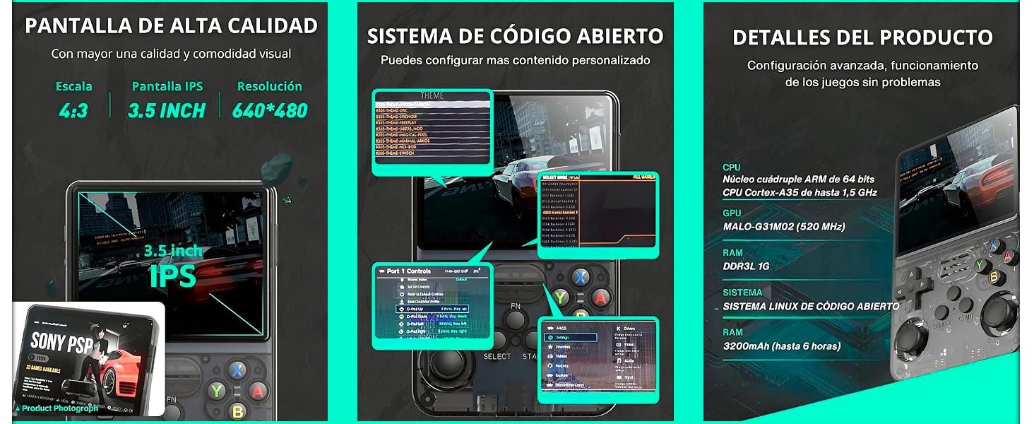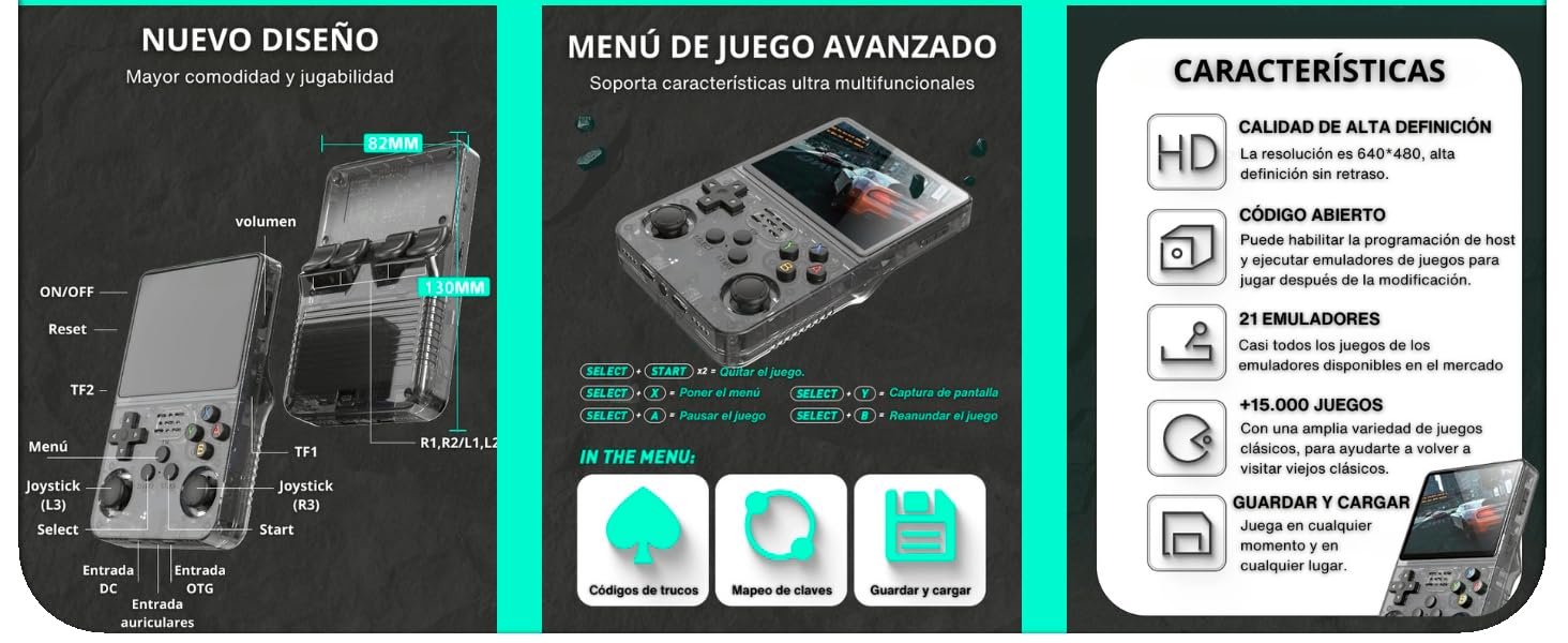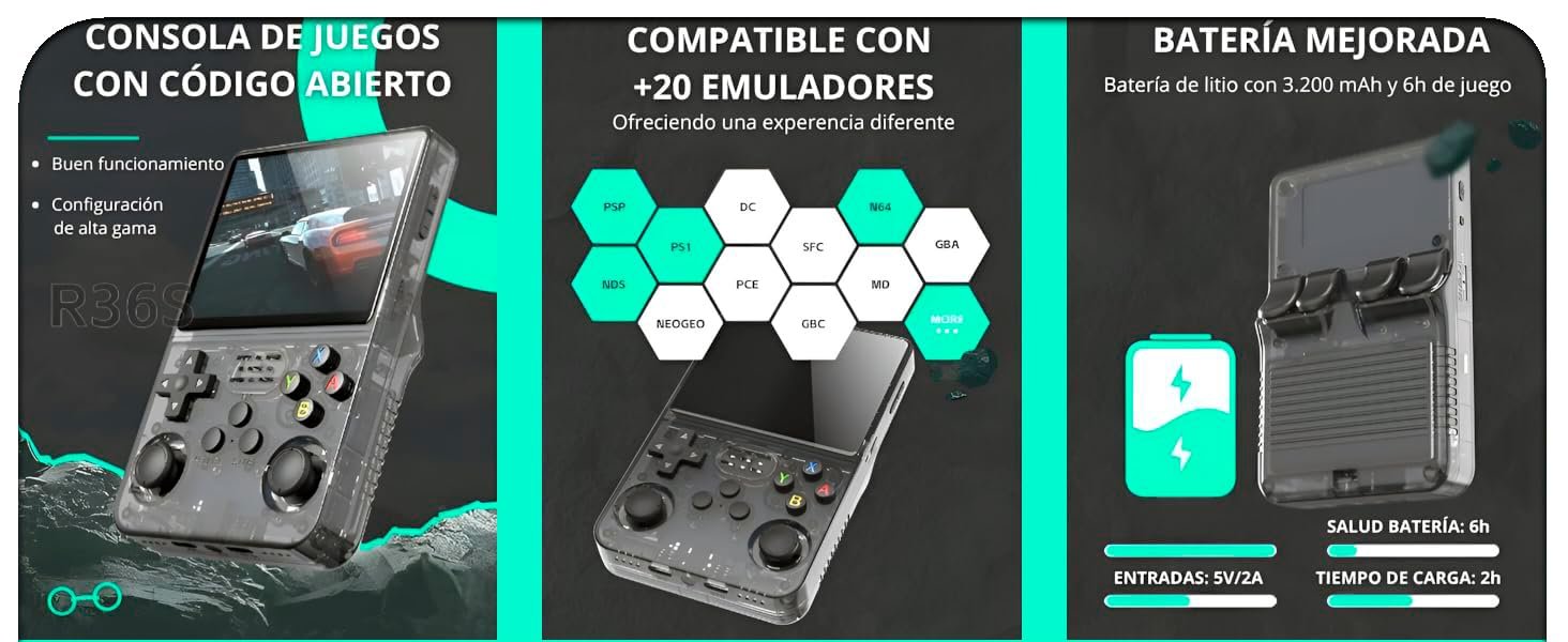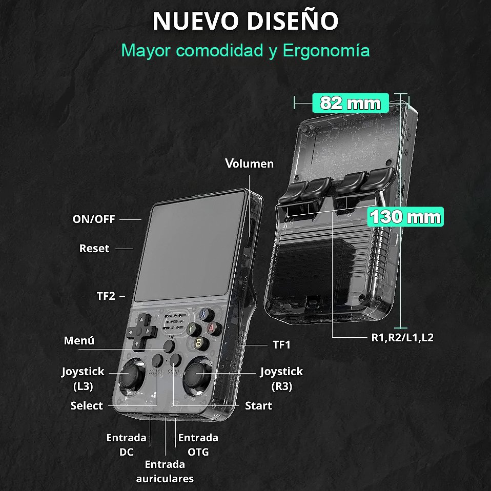 La consola retro portátil R36S es perfecta para los amantes Retro Gaming. +26 emuladores, +15.000 juegos preinstalados, 64GB hasta 258 GB ¡Envío Gratis 24h!