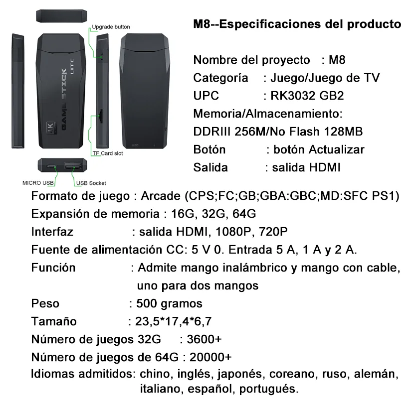 Arcade inalámbrico HDMI HD M8: especificaciones del producto